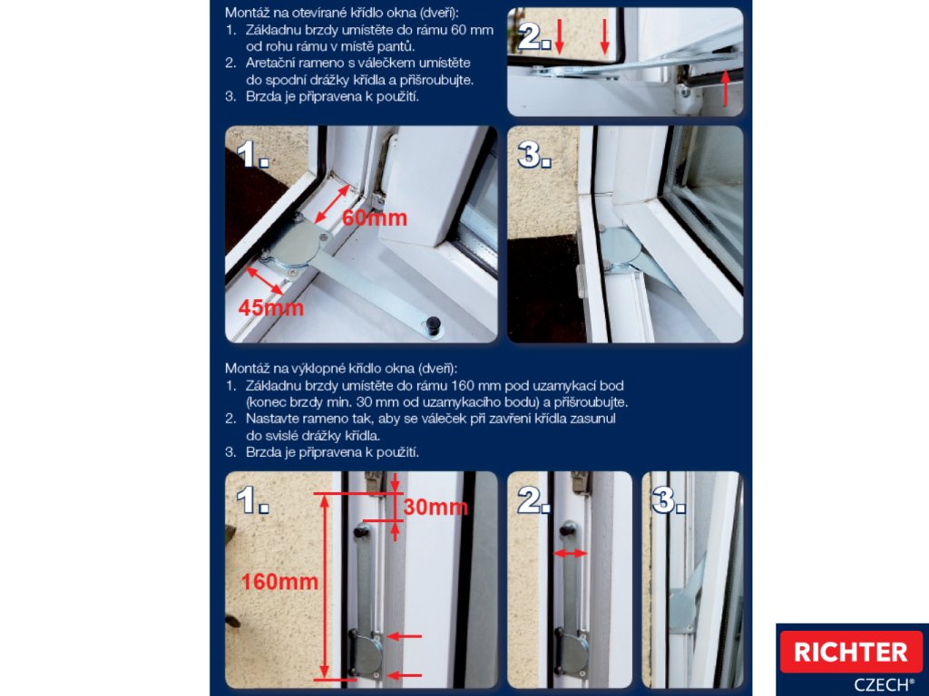 Kompatibilita: Vhodné pro plastová okna a balkonové dveře s minimální šířkou falcu rámu 45 mm.